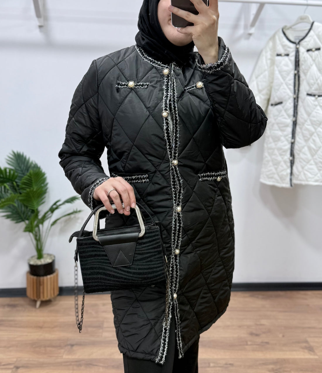 Şıklığı ve zarafeti bir arada sunan inci detaylı mont,modern çizgisi ve kaliteli dokusuyla kış stilinize...