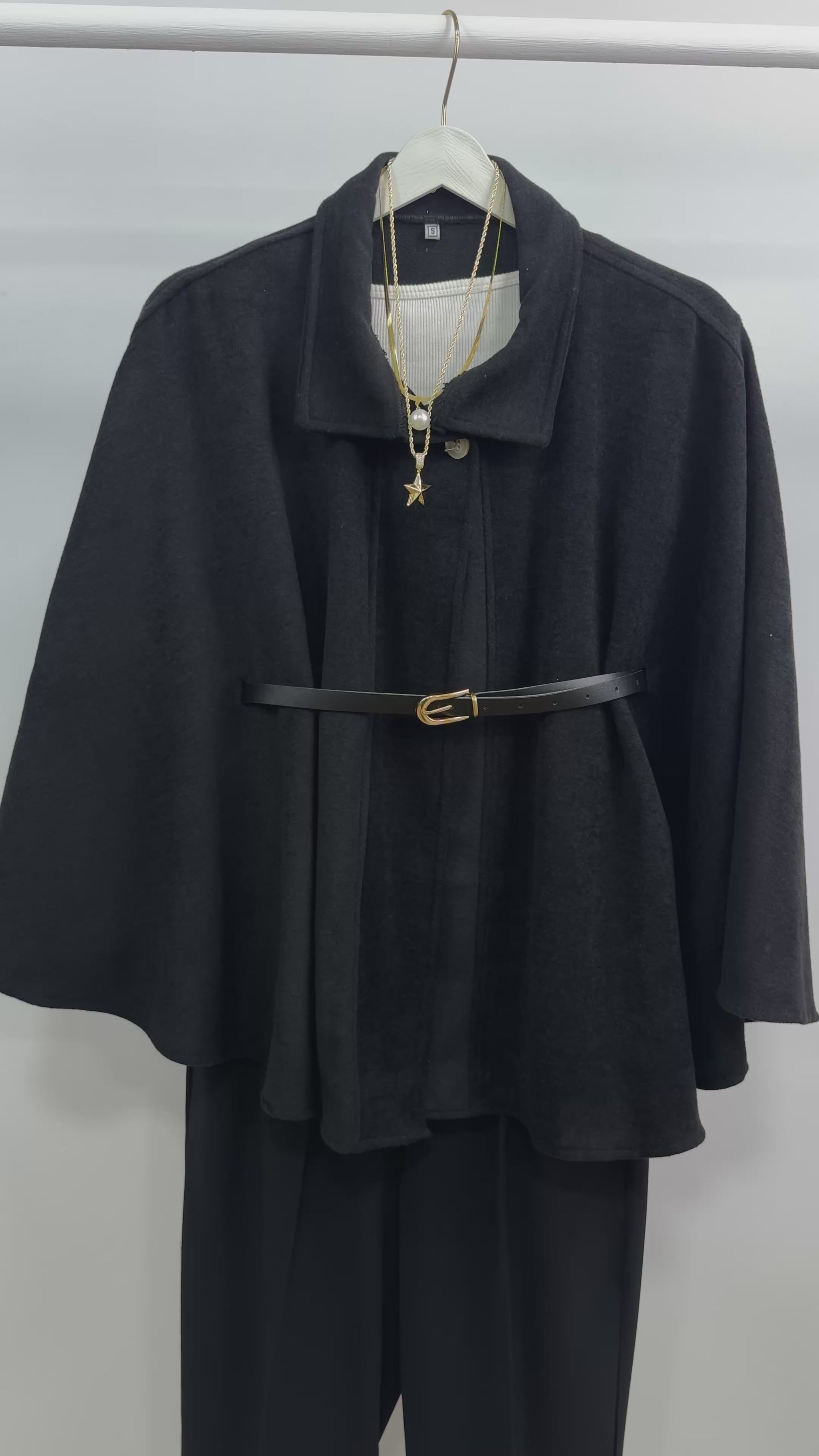 Günlük stilinden ofis kombinlerine, şehir hayatından özel gün kombinlerine kadar geniş bir kullanım alanına sahip olan bu panço,hafif yapısına rağmen ideal bir mevsimlik koruma sağlar.Her bedene uyum sağlayan rahat kesimi ile güçlü, sade ve iddialı bir görünüm isteyen kadınlar için mükemmel bir seçimdir.Siyah ve haki seçenekleriyle farklı zevklere kolayca uyum sağlar.