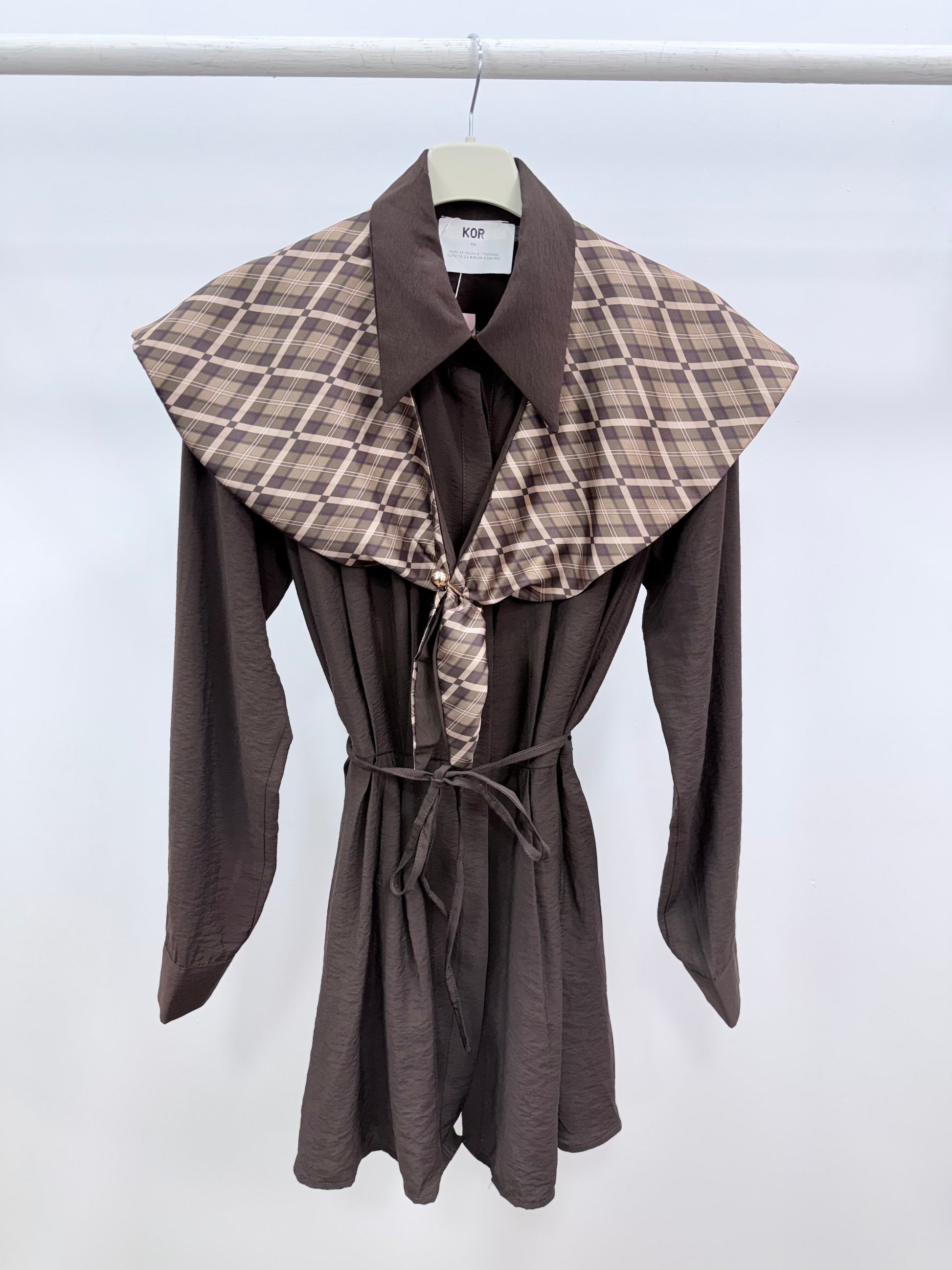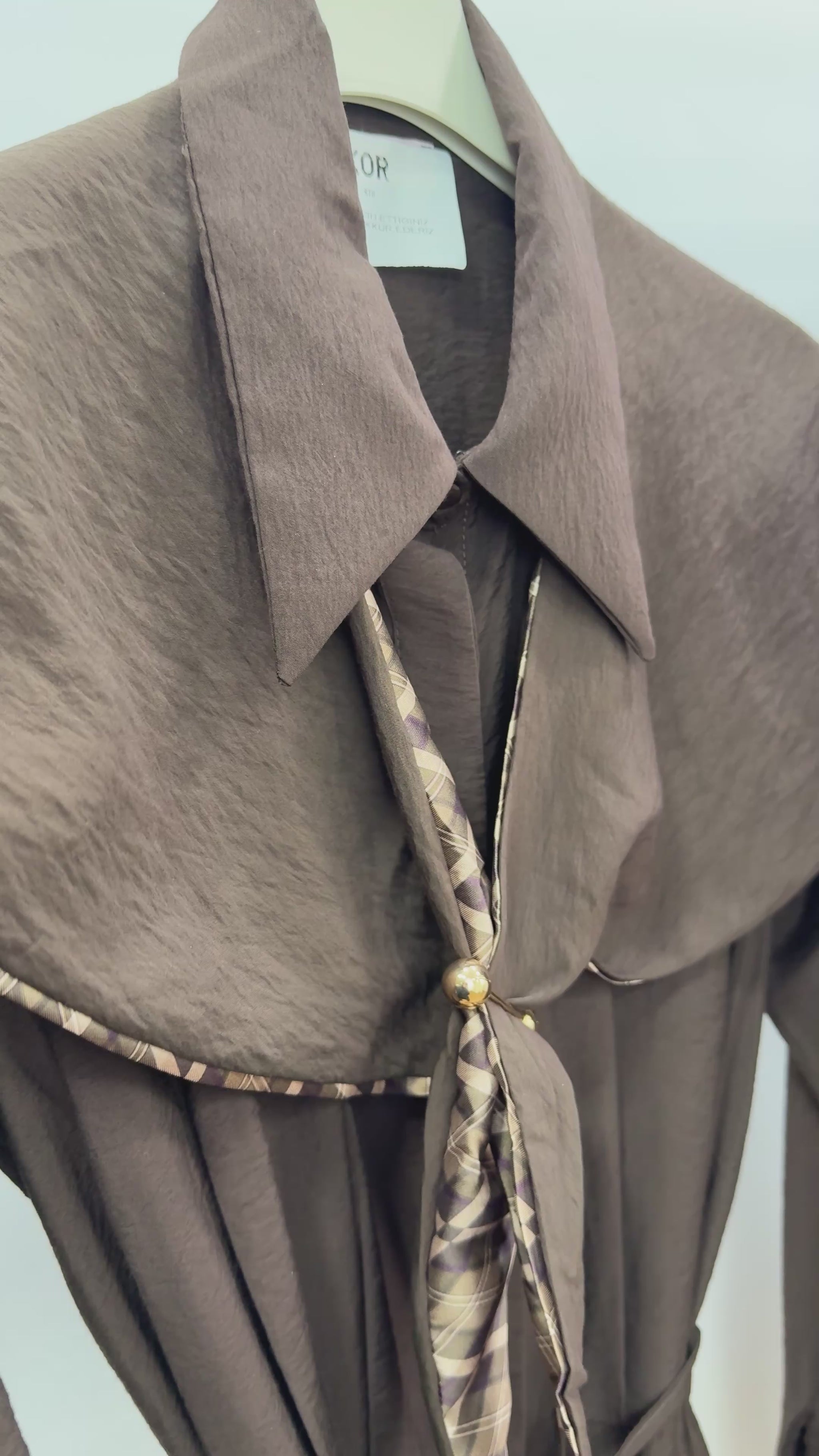 Zarif duruşu ve özgün tasarımıyla öne çıkan pileli kahverengi gömlek, stil sahibi kombinlerin vazgeçilmez parçası olmaya aday.