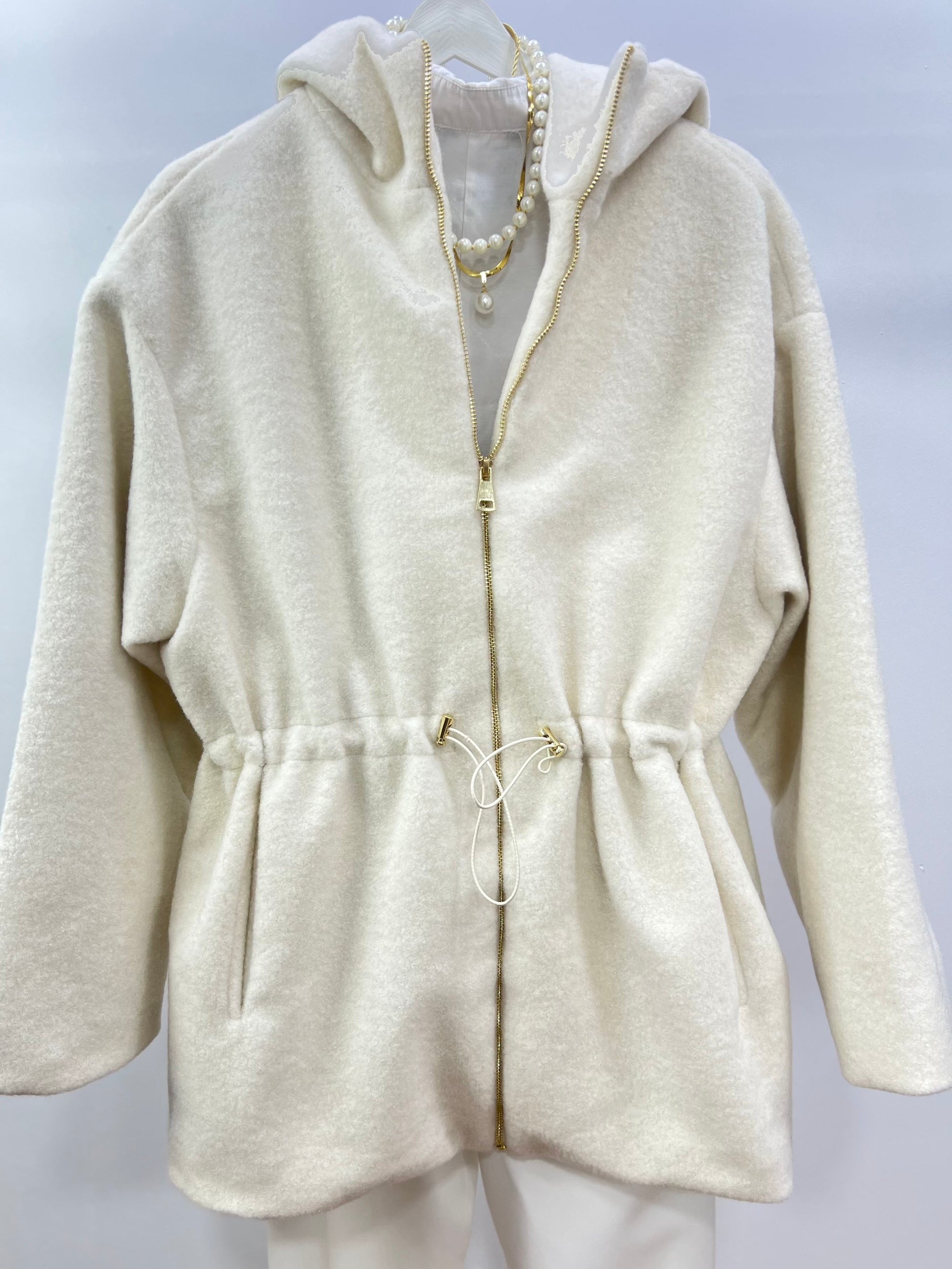 Kapüşonlu Kaşe Ceket/Krem