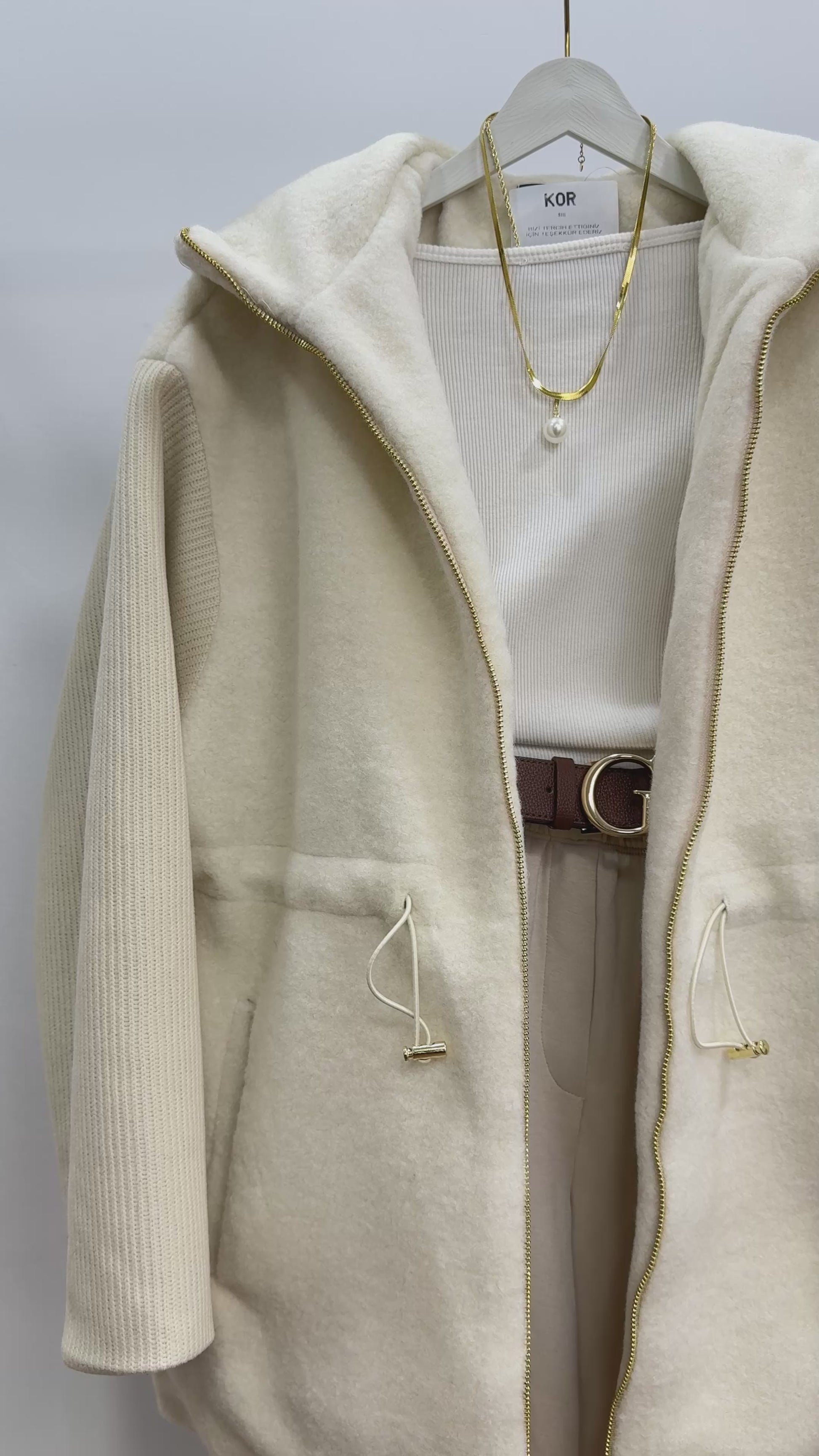 Kapüşonlu Triko Kol Detaylı Ceket/Krem