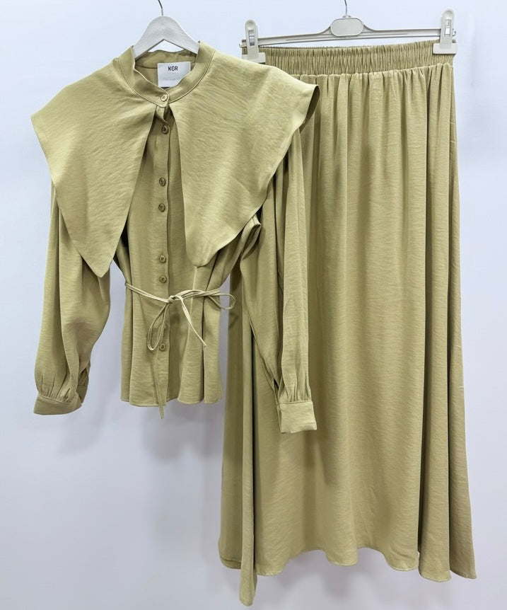 Yaka Detay Etek Takım/Yağ Yeşil